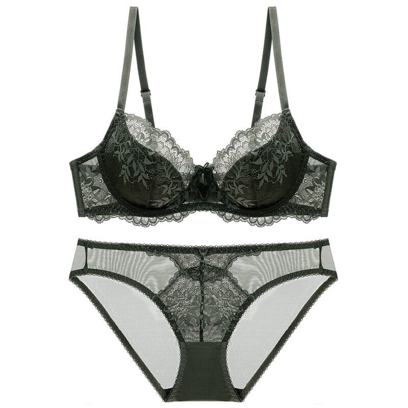(A-Eカップ)セクシー 下着 薄い レース 大きいサイズ 胸を小さく ワイヤー入り ブラ&ショーツセット37753979