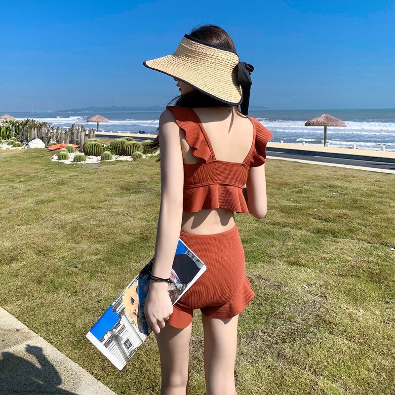 (2点)スウィート 3色 フリル 編みニット ボーイレング ローレグ 水泳 タンキニ ビーチ 水着38014997