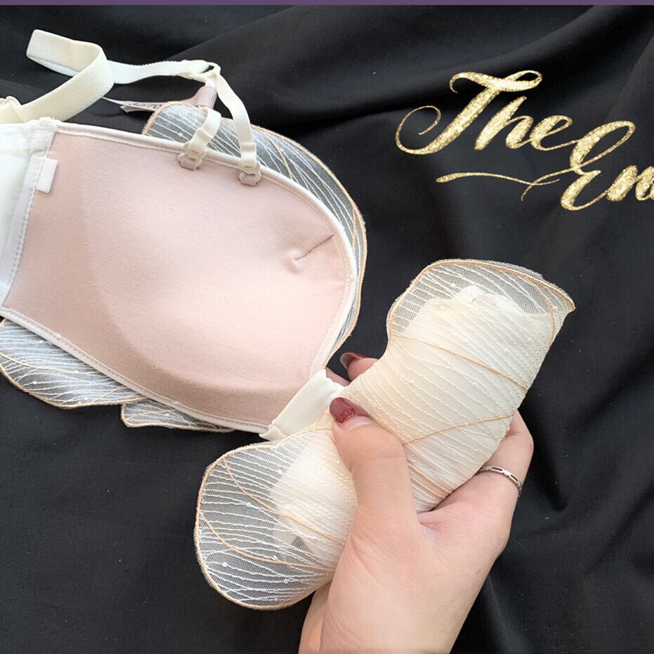 (A-Bカップ)かわいい 刺繍 ボウタイ ワイヤーなし 下着 4色 ブラ&ショーツセット40538245