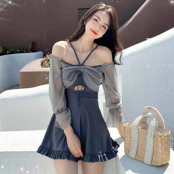 人気新作 ワンピース 配色 透かし彫り ワイヤーなし かわいい 長袖 3color 少女 水着41527438
