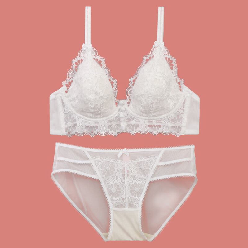(ABカップ)高級感 レース 刺繍 セクシー 下着 ボウタイ ワイヤーなし ブラ&ショーツセット41788184