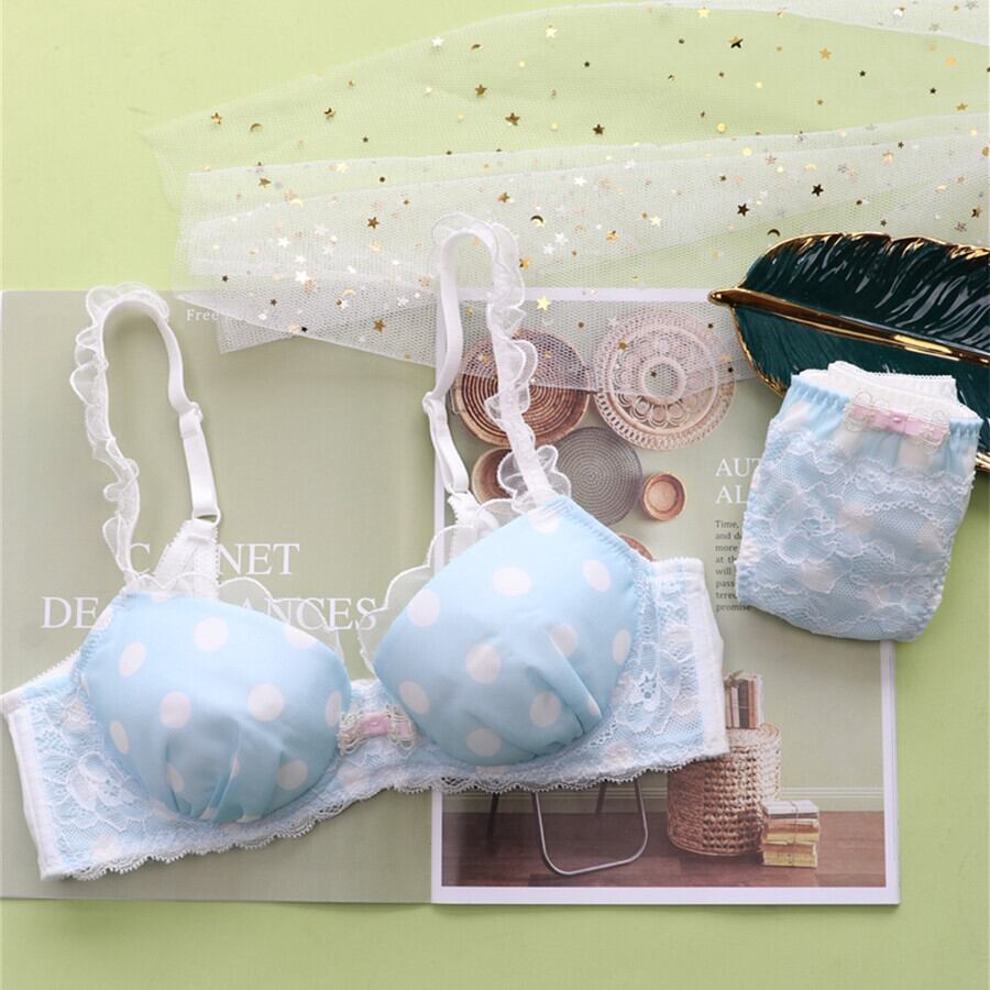 (A-Eカップ)ドット柄 少女 大きいサイズ 配色 ボウタイ 日系 ワイヤー入り ブラ&ショーツセット42294125