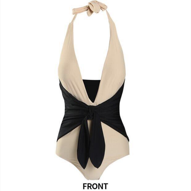 セクシー 深v 体型カバー 配色 レディース ボウタイ 2色 背中見せ 着痩せ ワイヤーなし 水着42337829