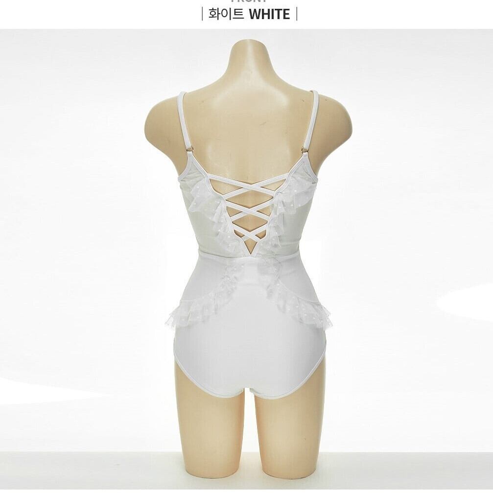体型カバー レディース ホワイト リボン 透かし彫り セクシー 深V 水着42338970