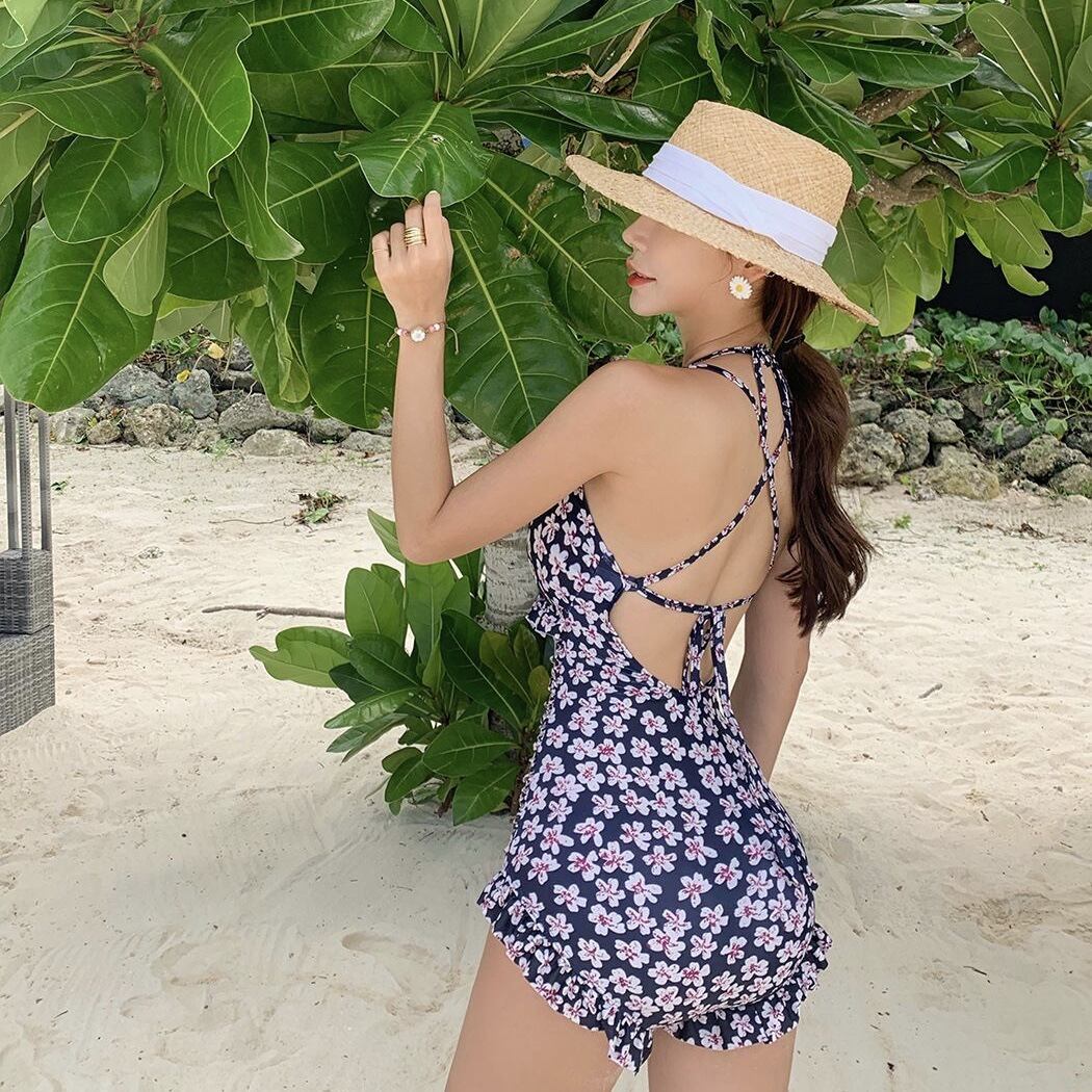花柄 デージー 背中見せ 体型カバー レディース 韓国系 セクシービキニ 2色 水着42468318