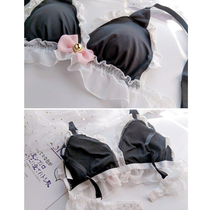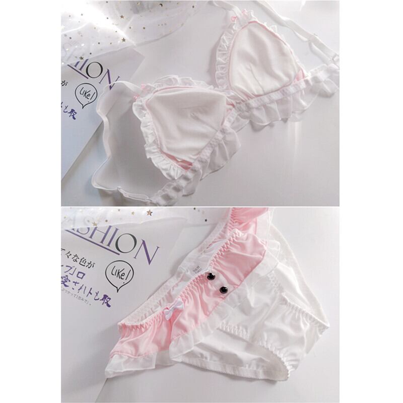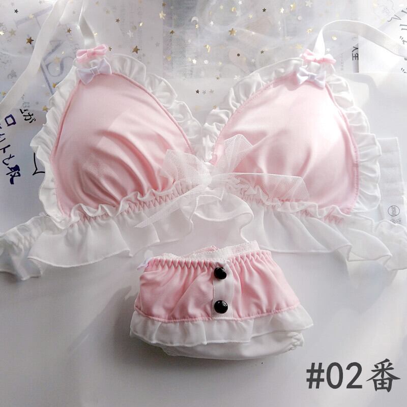 (A-Cカップ)可愛い 配色 ボウタイ レース 3色 兎耳 後ろホック ブラ&ショーツセット42818950