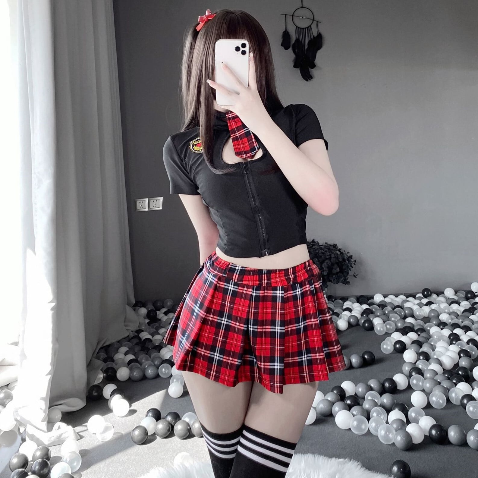 (4点)学生服 制服 ミニスカート ファスナー パーティー チェック柄 セクシーランジェリー43358726