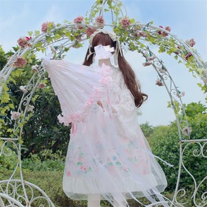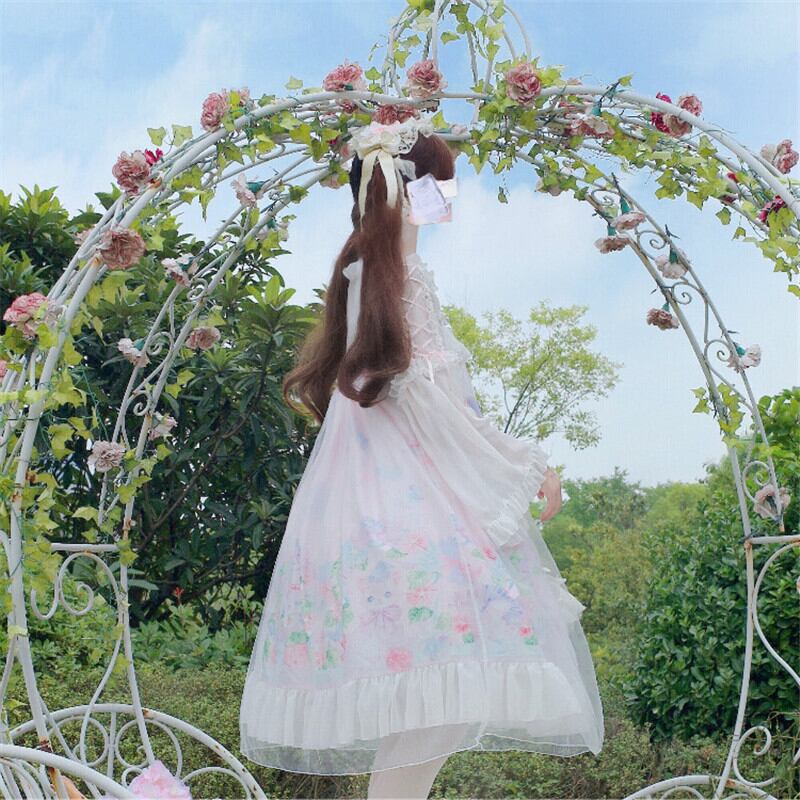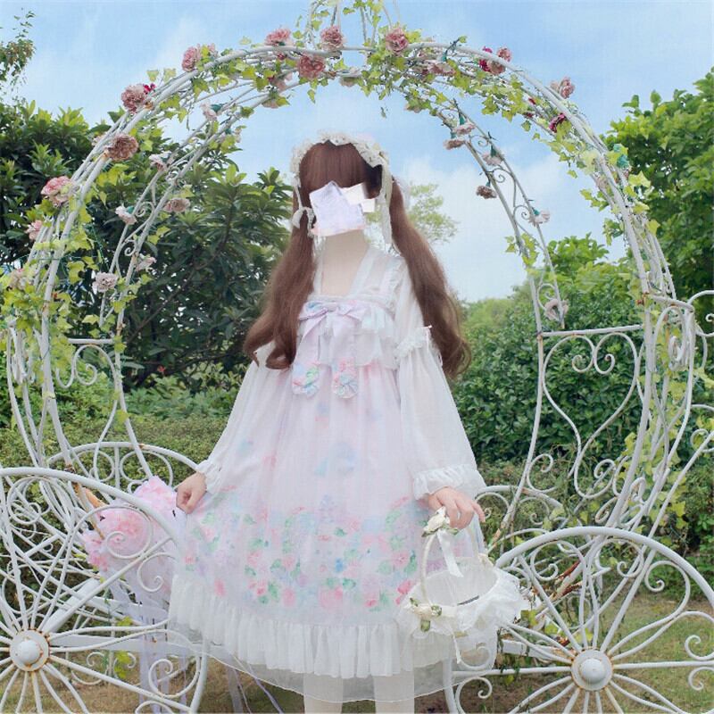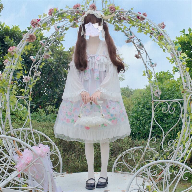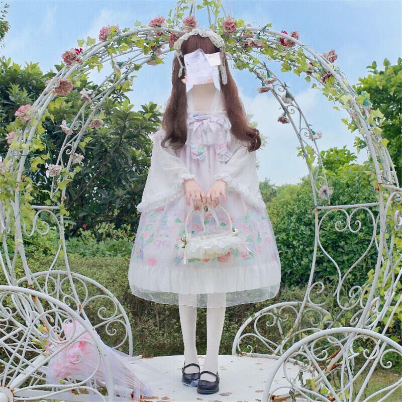 チャイナ風 可愛い Lolita jsk ロリータファッション レース ピンク ブルー 猫 花柄 ワンピース43645555