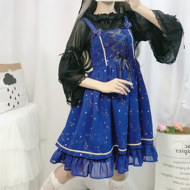 可愛い Lolita jsk 学園祭 文化祭 キャミワンピース ロリータファッション 星 リボン ワンピース43647641