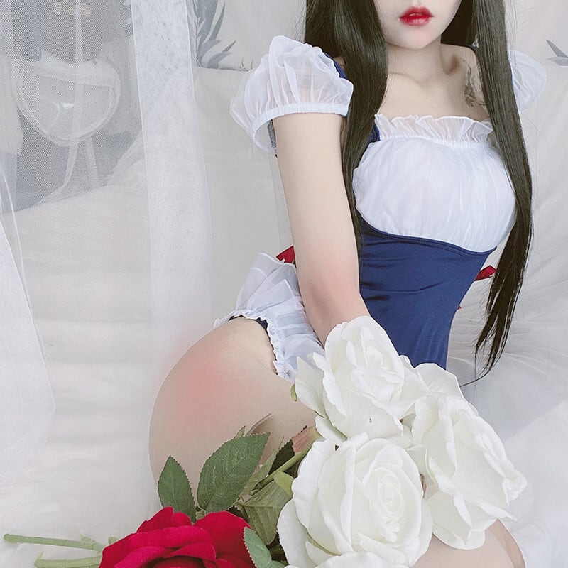 かわいい フリル リボン レース 穴あき 2色 レオタード セクシーランジェリー43761892