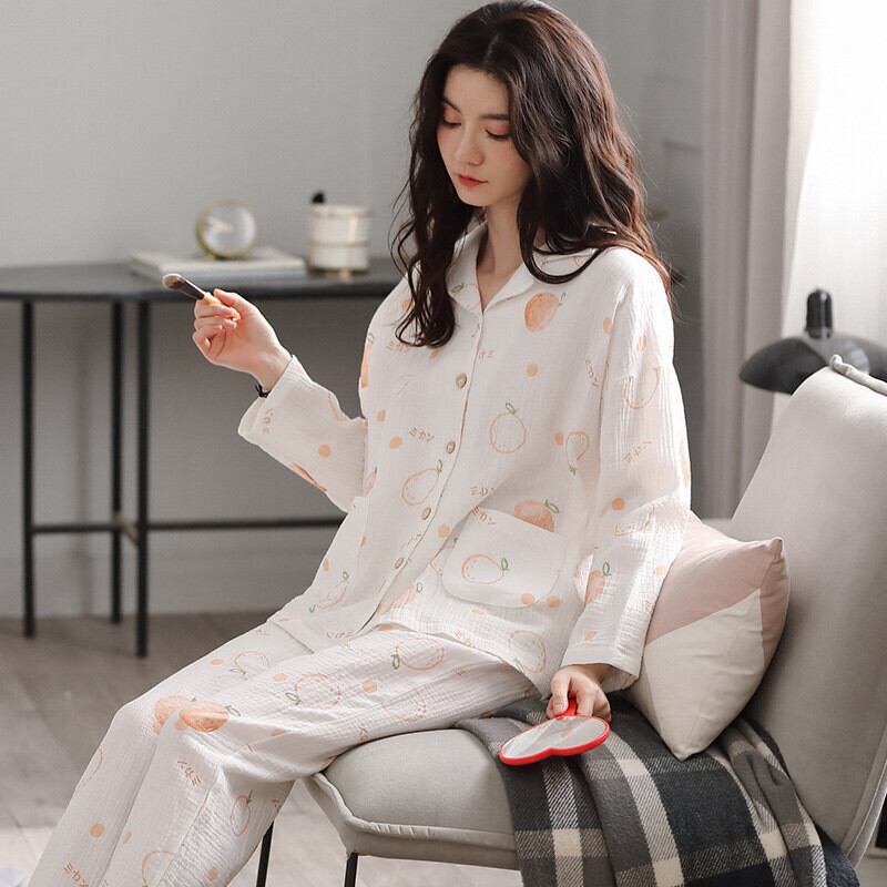 ミカン 綿 コットン 着心地いい ガーゼ 折り襟 ルームウェア 春夏秋 長袖セット・パジャマ43772417