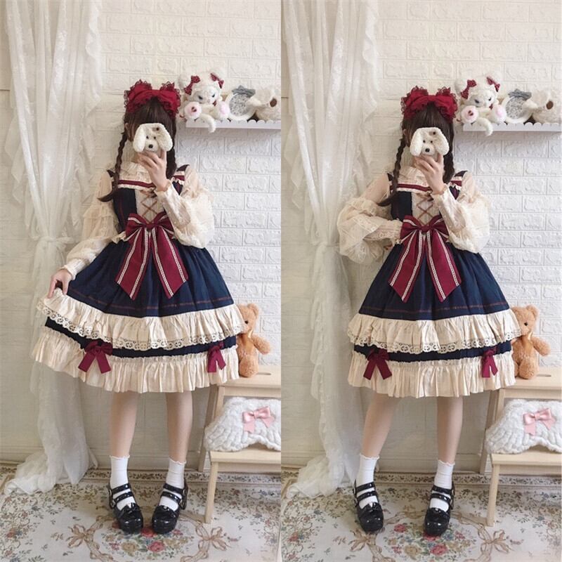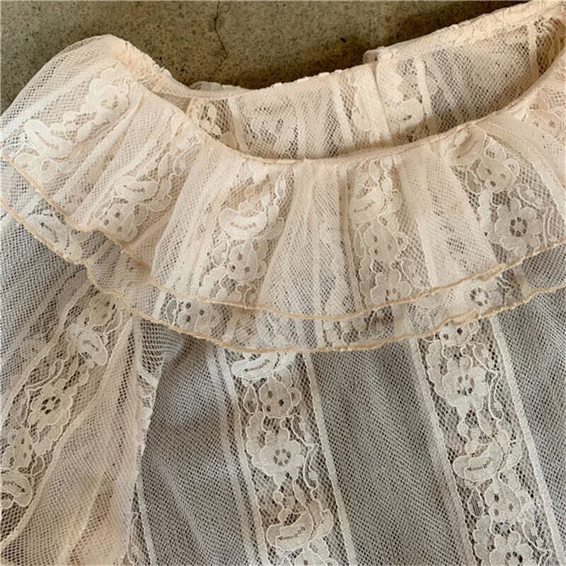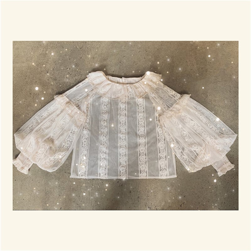 トップス 可愛い Lolita jsk ランタンスリーブ ロリータブラウス レース 透视感 長袖トップス44004479