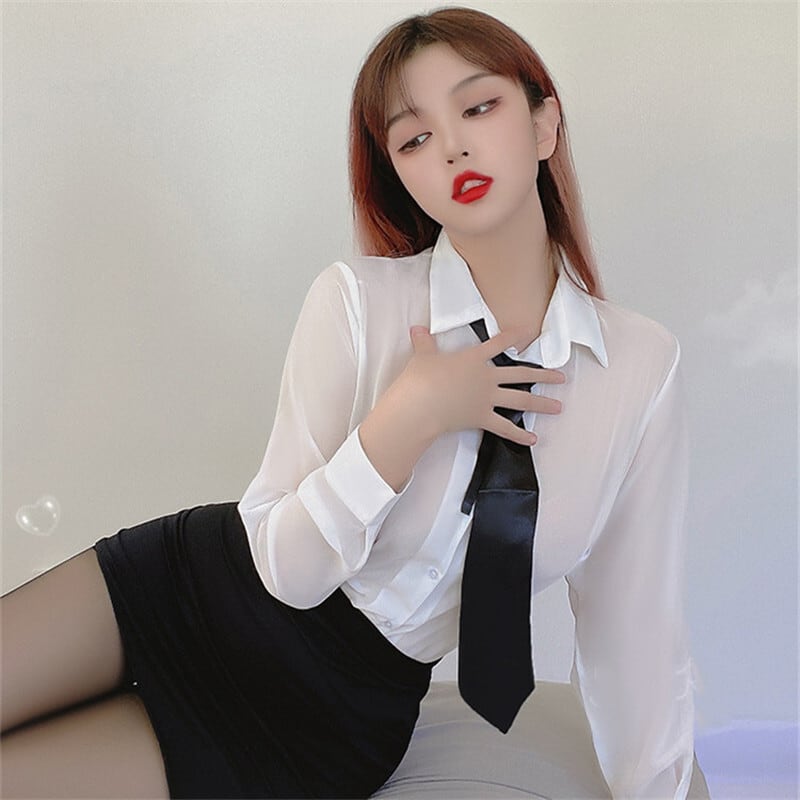 (4点)制服 秘書コスプレ 誘惑 スリット セクシー 透け感 OL ランジェリー44172426