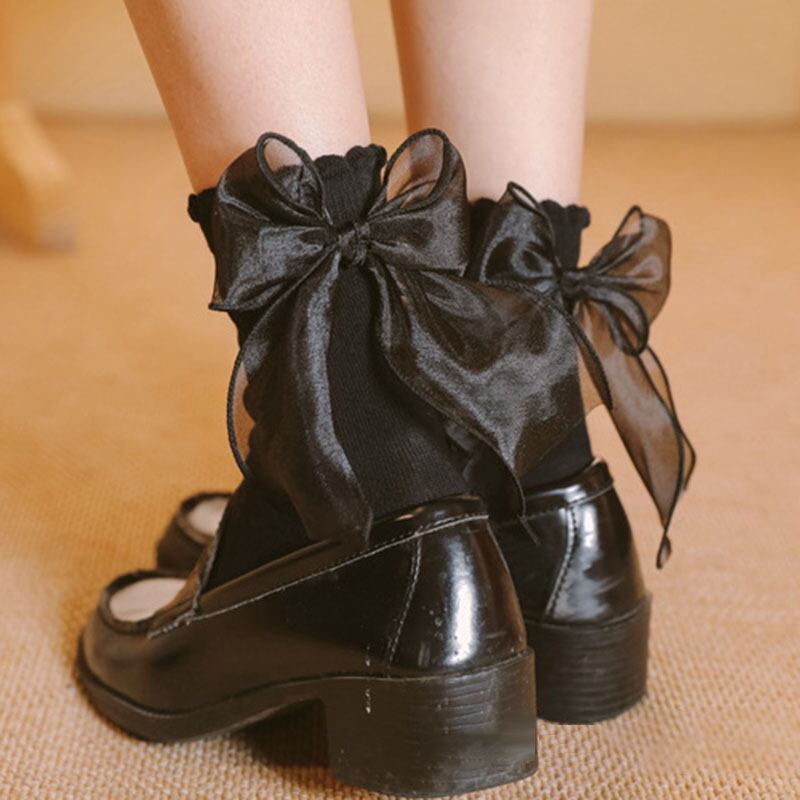 ロリータ 無地 3色 ボウタイ jk レディース 靴下44441677