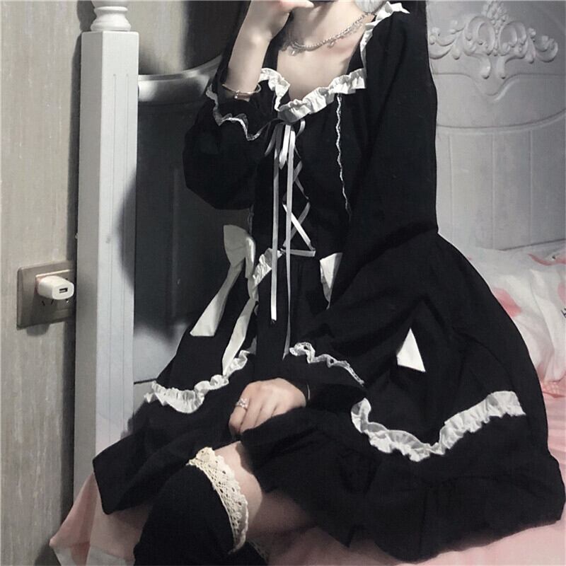 かわいい Lolita ボウタイ 少女 学園祭 ロリータファッション ワンピース44450266