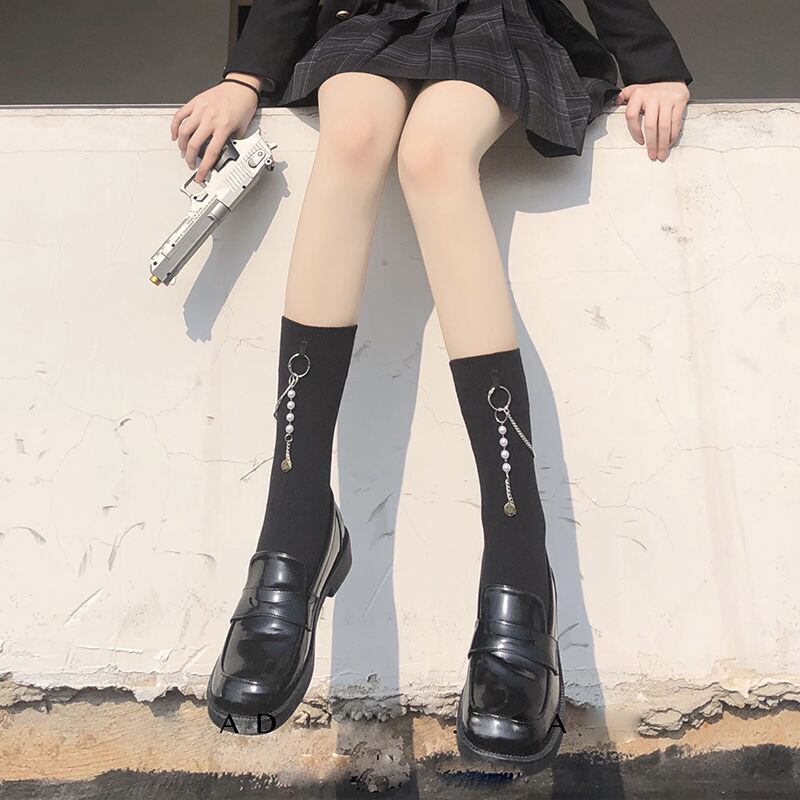 特別なデザイン 個性派 チェーン ロリータ かわいい ブラック ホワイト 靴下44540668