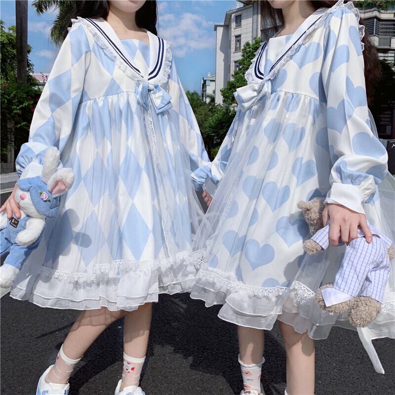 絶対可愛い Lolita op プリント ハートひしがた 学園祭 ボウタイ ワンピース44690361