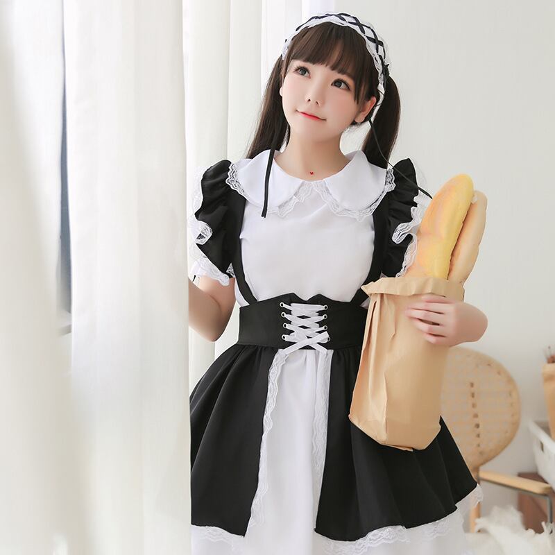 (3点)かわいい メイド服 S-4XL レース ブラック Lolita ボウタイ 少女 ワンピース45194280