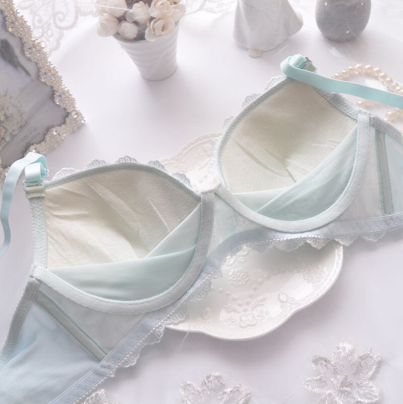 (A-Dカップ)スウィート マカロン 下着 レース 夏 学生 ワイヤー入り ブラ&ショーツセット45718319