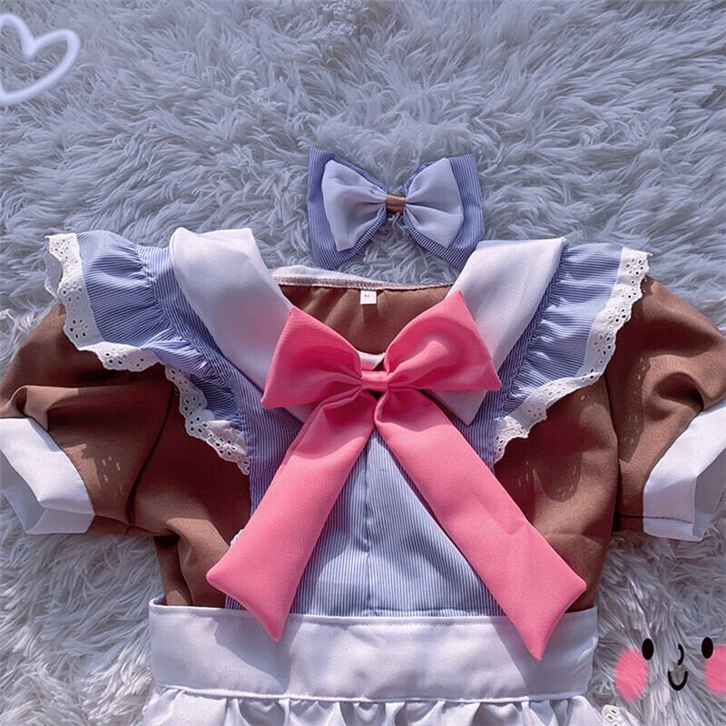 (3点)かわいい メイド服 cosplay S-XL ブラウン ボウタイ ストライプ柄 ワンピース45903996