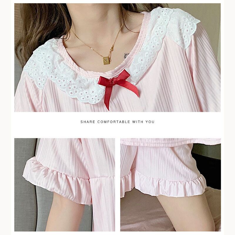 キュート ルームウェア リボン 丸襟 フリル 寝巻き 夏 半袖セット・パジャマ45952702