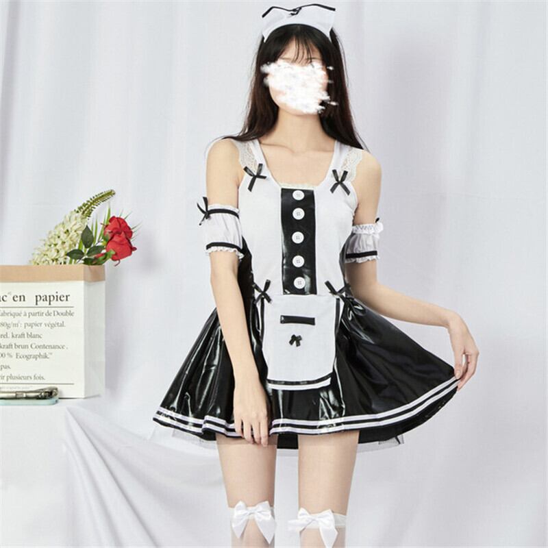 (3点)絶対可愛い コスプレ メイド服 ボウタイ ボタン付き ブラック ワンピース46794952