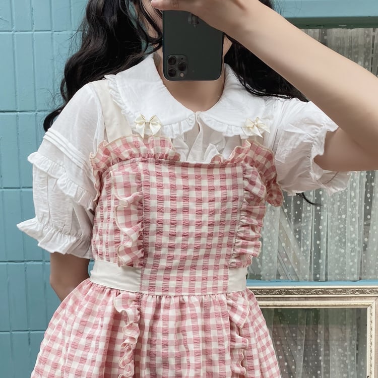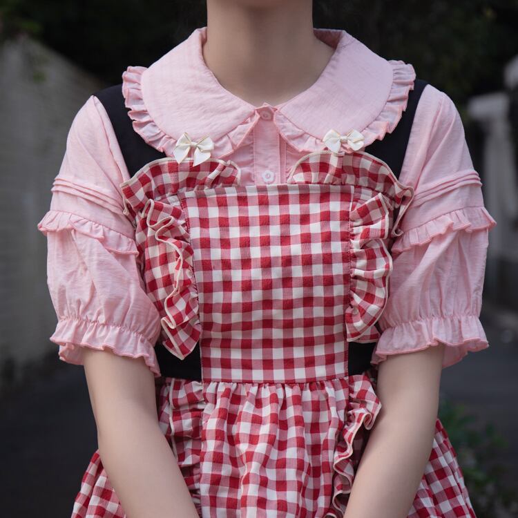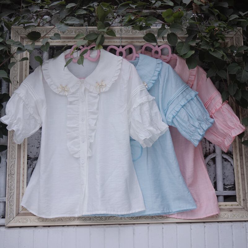 丸襟 3色 ボウタイ フリル ブラウス ボタン付き トップス46940583