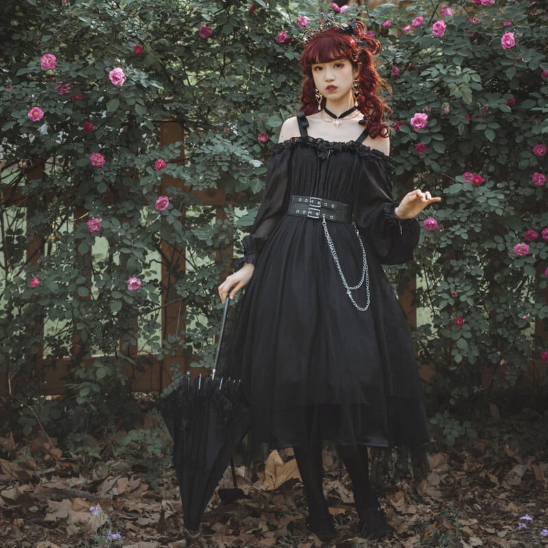 ゴスロリ Lolita op レース チェーン バンド 不規則 ワンピース46983117