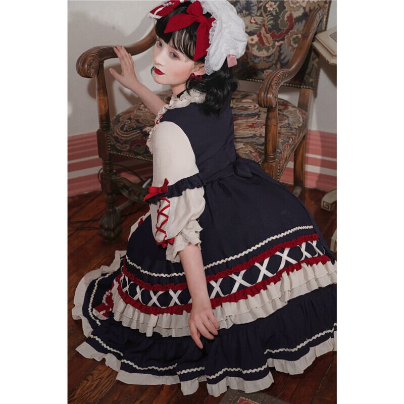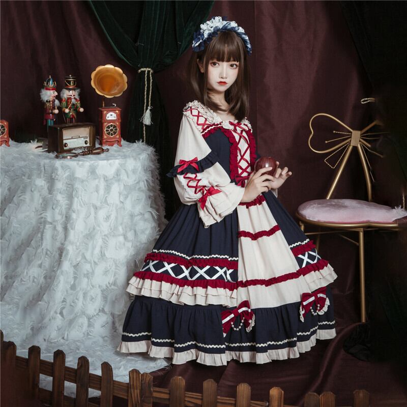 絶対可愛い Lolita op レース リボン ボウタイ 配色 ロリータファッション ワンピース46987413