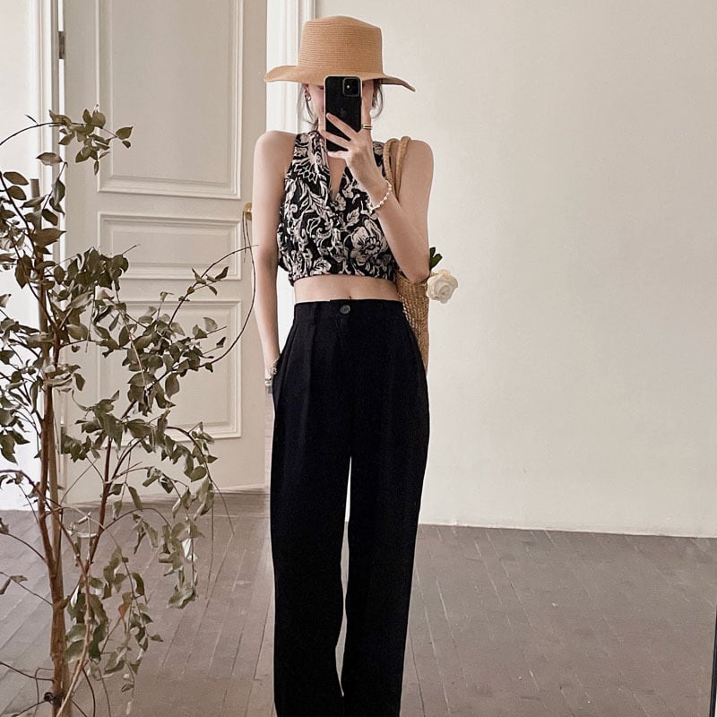 フランス式 気質 花柄 ホルターネック プリント 通勤 ビーチ キャミソール47001925