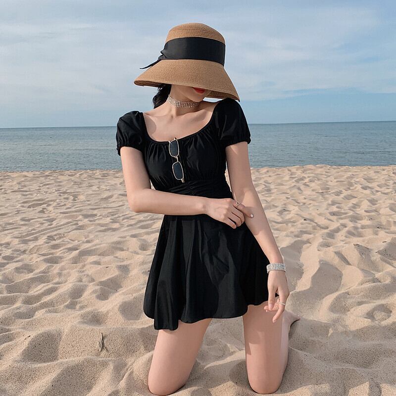着痩せ 大好評 水泳 シンプル 無地 ファッション ブラック ワンピース 水着47363073