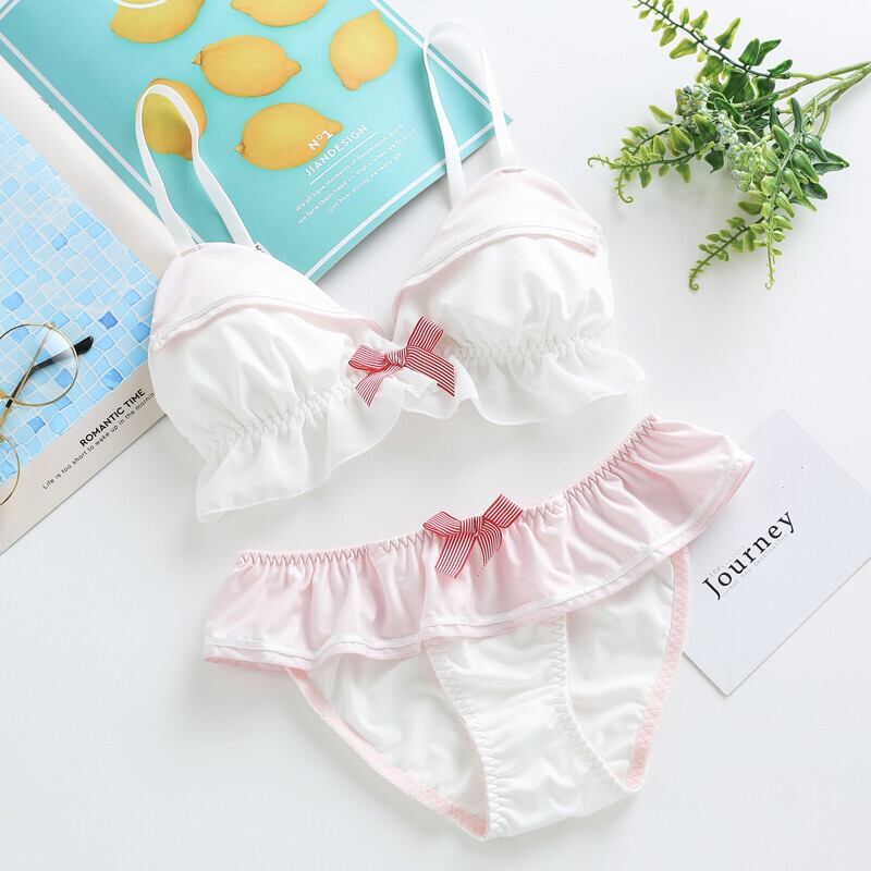 (A-Cカップ)海軍風 蝶結び キュート 制服 ワイヤーなし 下着 ブラ&ショーツセット50290131