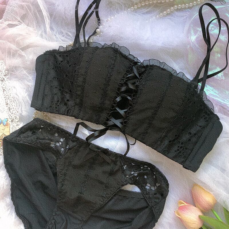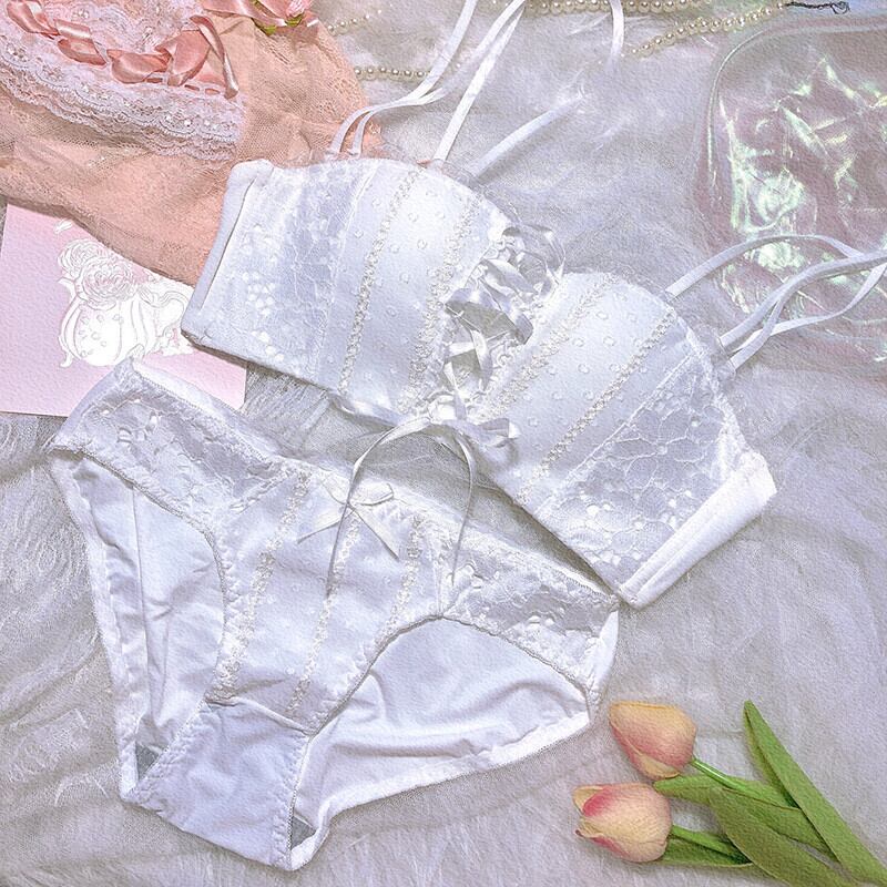 (ABカップ)特別なデザイン リボン かわいい レース ワイヤーなし ブラ&ショーツセット51037903