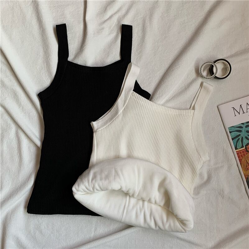 秋冬 ニット生地 寒さ対策 無地 暖かい 全4色 裏起毛 キャミソール52946895