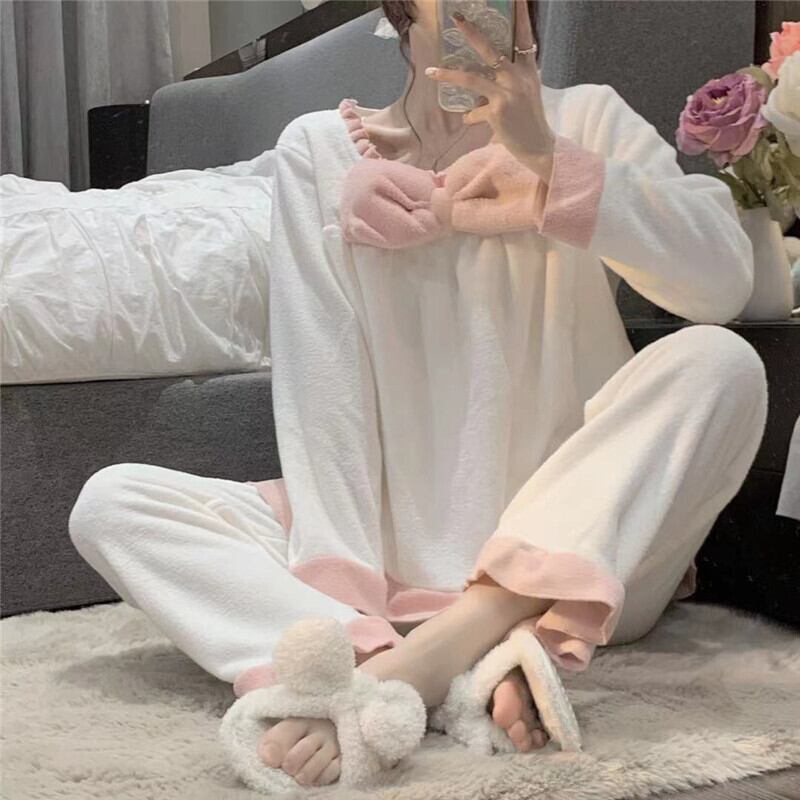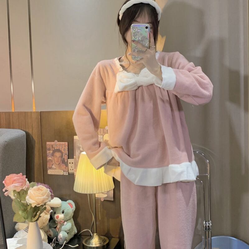 スウィート 配色 プリンセス 暖かい 秋冬 ボウタイ 長袖セット・パジャマ52948018