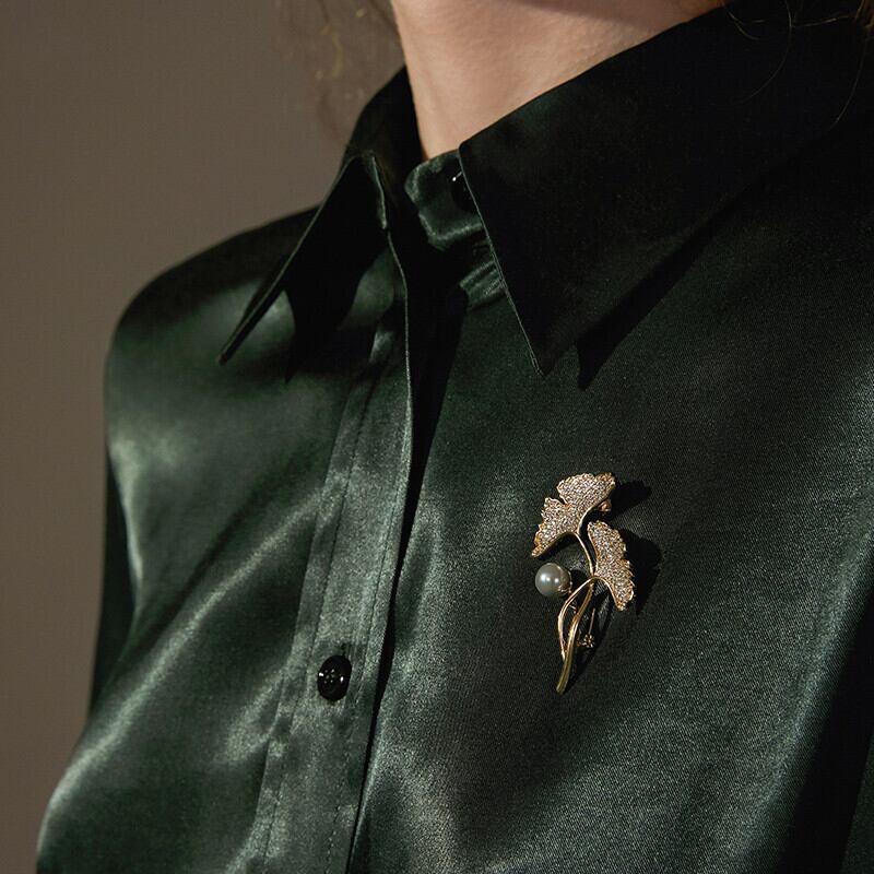 イチョウの葉 ブローチ フォーマル 贈り物 ギフト 飾り物 ブレザー用 シャツ用