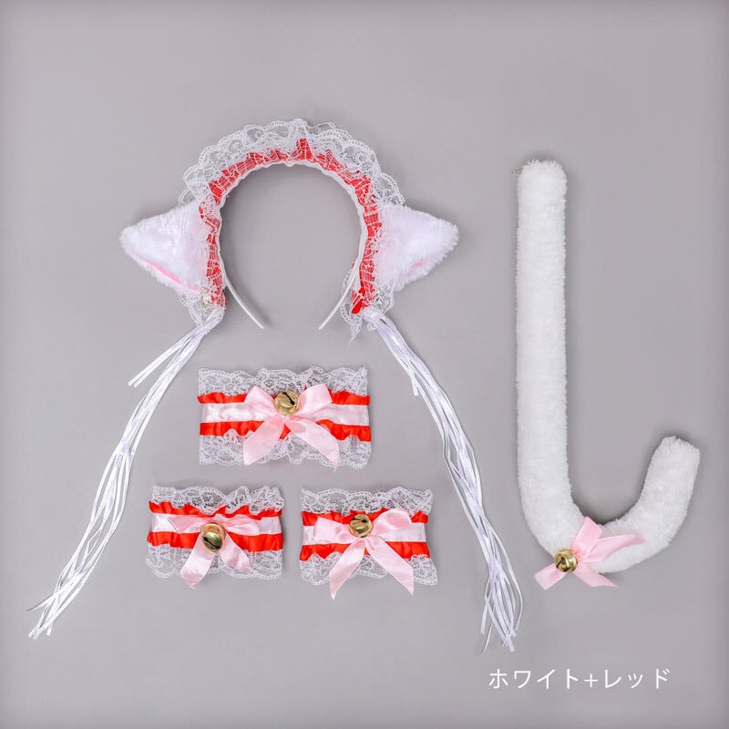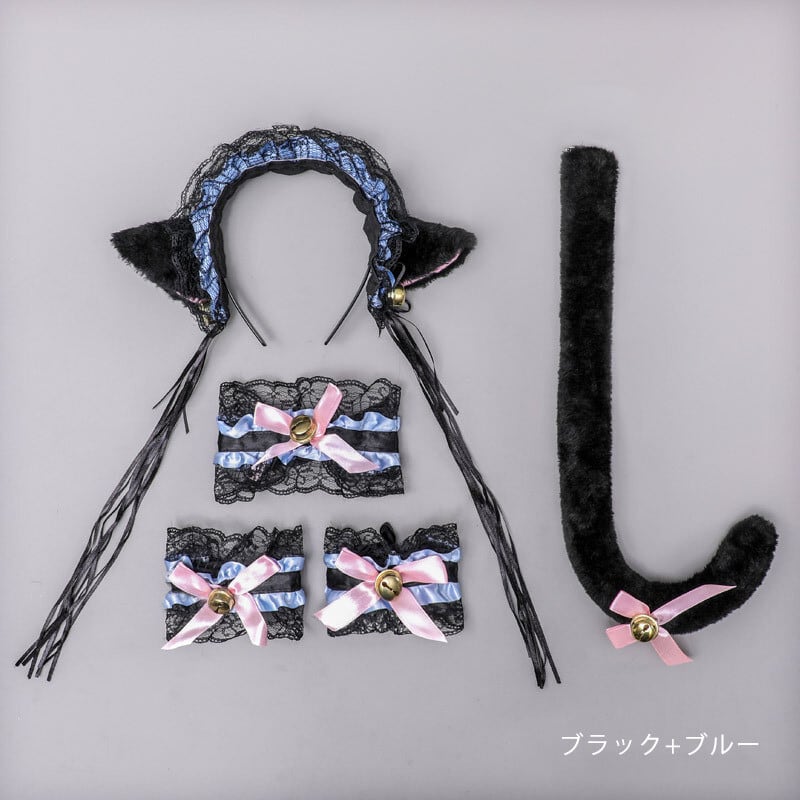猫コスプレ 4点セット可愛い 猫耳 レース ボウタイ 全12色 レディースコスプレ衣装53630165