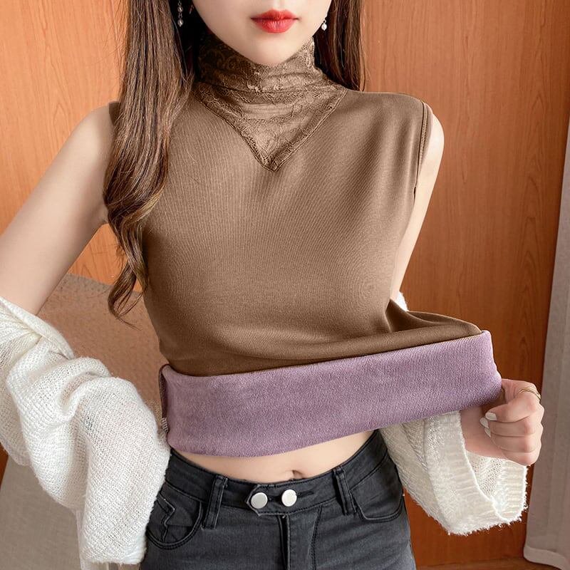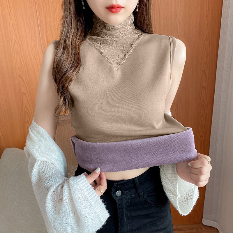 エレガント 寒さ対策 秋冬 スタンドネック レース 厚い保温 暖かい 全6色 キャミソール55093577