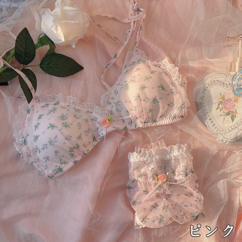(A-Cカップ)日系 小柄 少女 4色 スウィート レース ボウタイ ブラ&ショーツセット55891995