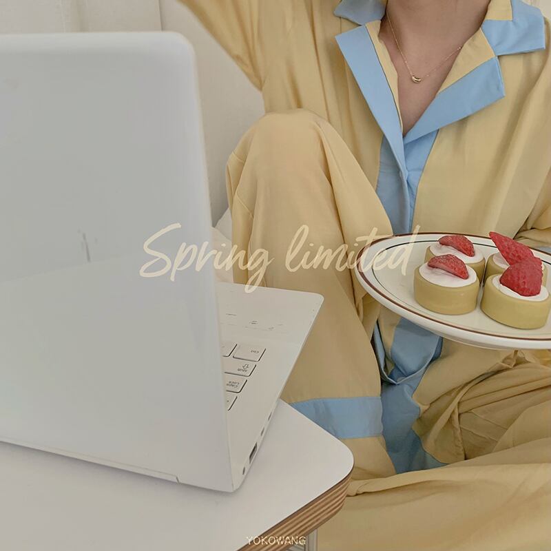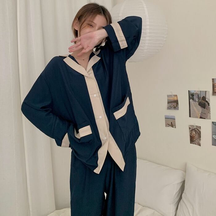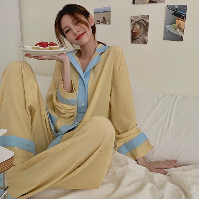 カジュアル ゆったり 配色 韓国系 春秋 ルームウェア レディース 長袖セット・パジャマ59428385