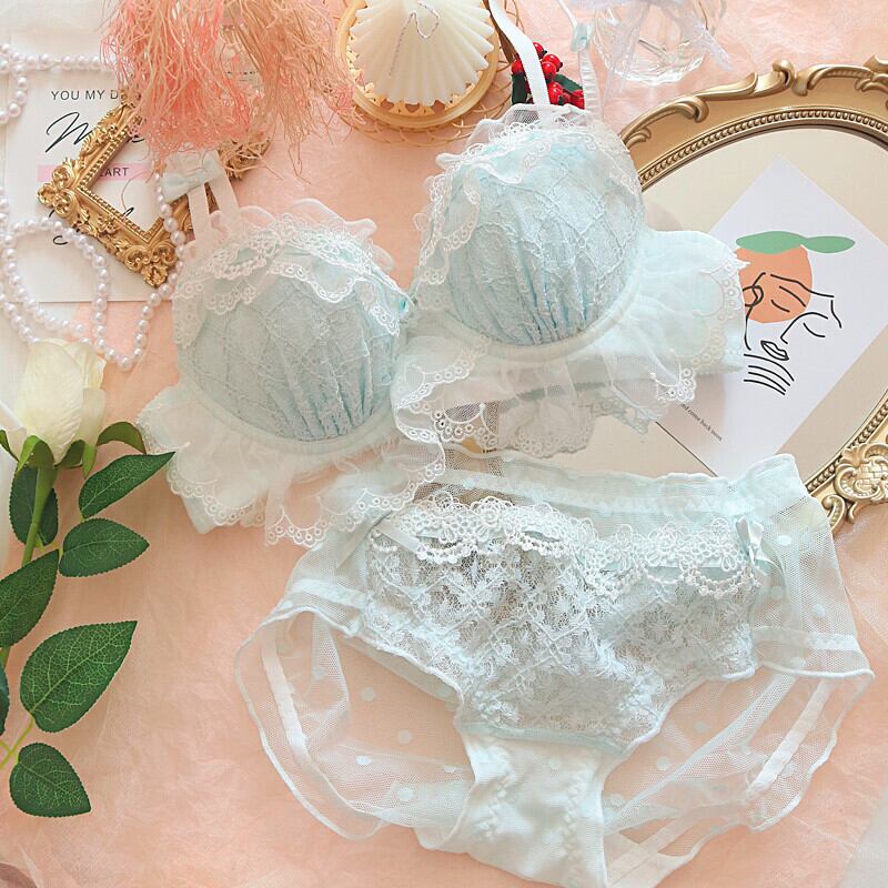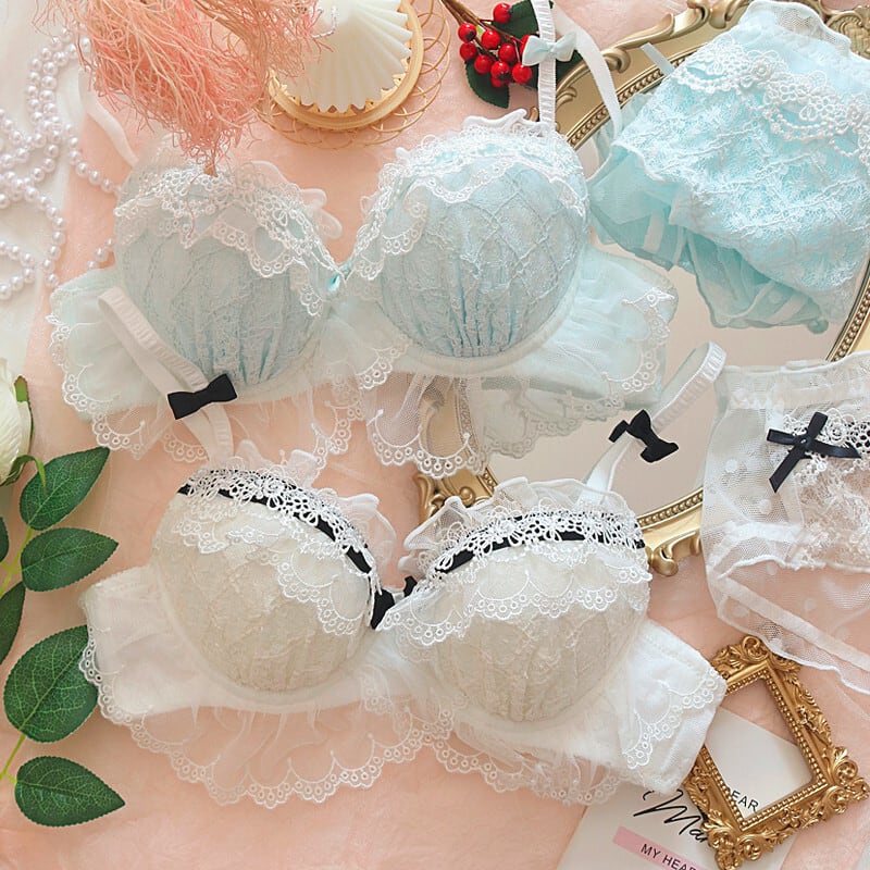 (A-Cカップ)抜群感強い かわいい ボウタイ 下着 レース ワイヤーなし ブラ&ショーツセット60556886