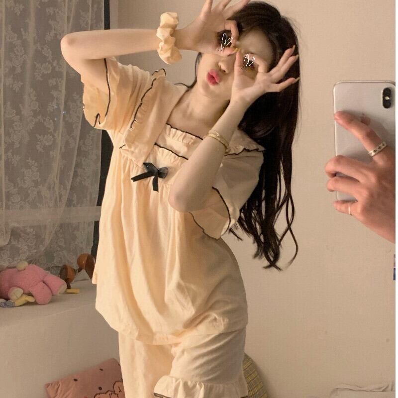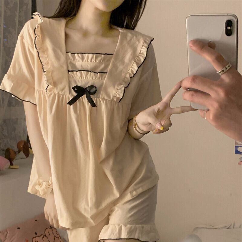 スウィート 少女 レース 夏 ルームウェア レディース ボウタイ 半袖セット・パジャマ60944005