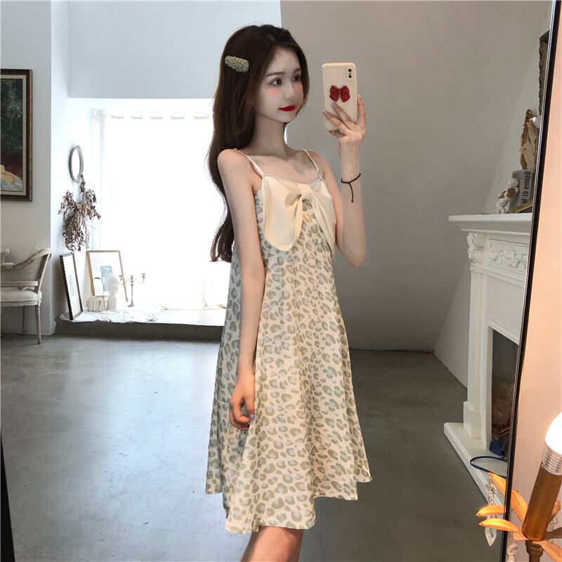 売れ筋 エレガント ボウタイ ヒョウ柄 セクシー 夏 キャミソール ワンピース60944933