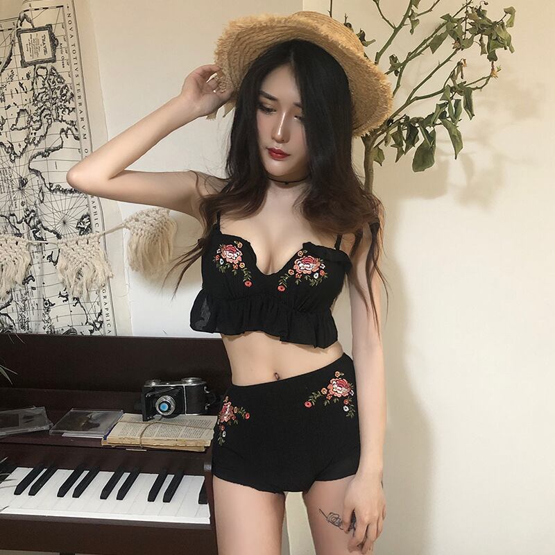 刺繍 フリル セクシー ワイヤー入り ビキニ 体型カバー タ 温泉 M/L/XL 水着62678216