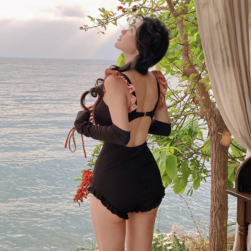 ボウタイ スウィート 配色 透かし彫り フリル 温泉 水泳 モノキニ 体型カバー 水着63114912
