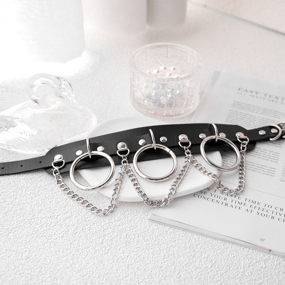 ゴシック 首輪 リング 調節可能 コスプレ ブラック リード レザー PU チョーカー63203135