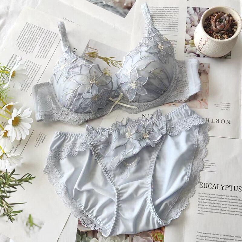 (B-Hカップ)かわいい 日系 花柄 ボウタイ 大きいサイズ ワイヤー入り ブラ&ショーツセット63754501