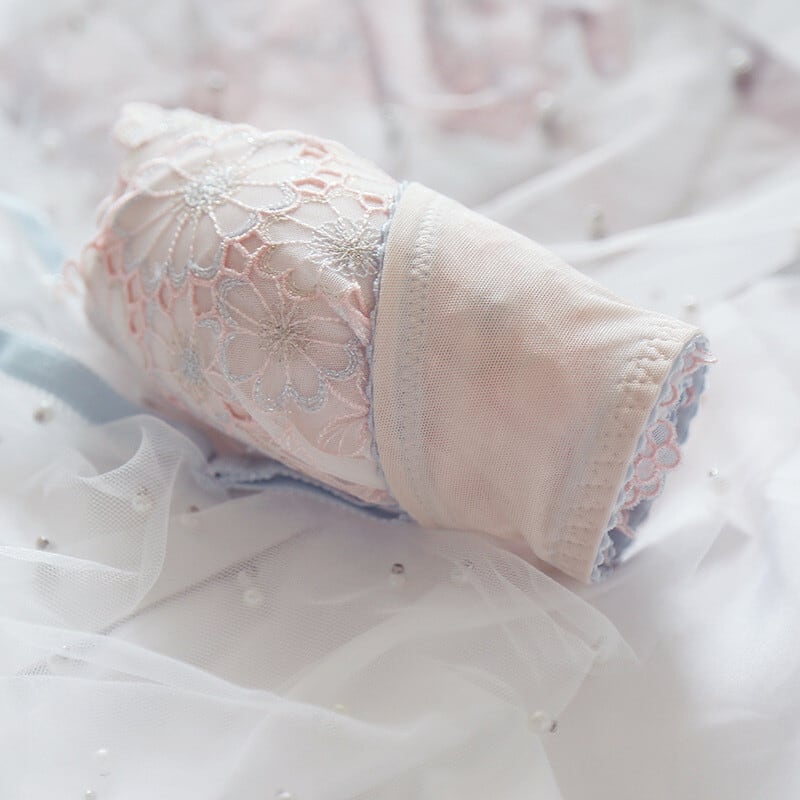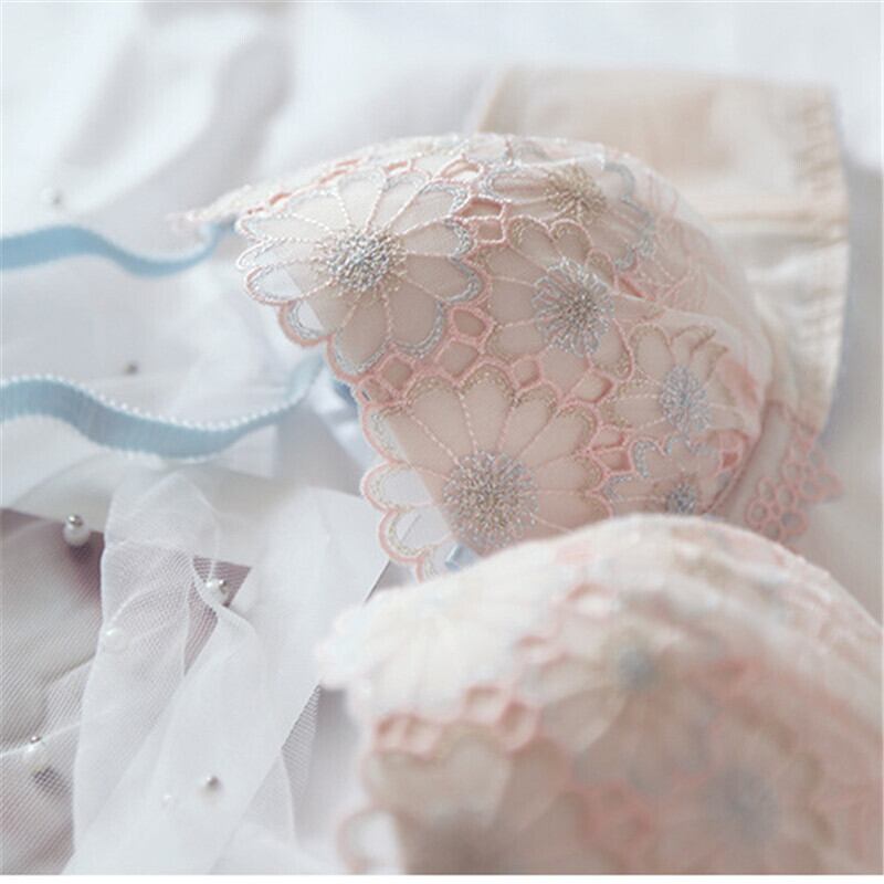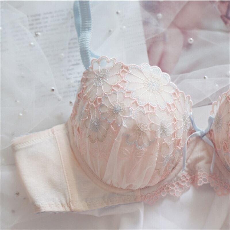 (A-Dカップ)日系ラブリー 若見え 下着 レース 清純 2色 刺繍 ブラ&ショーツセット63755688