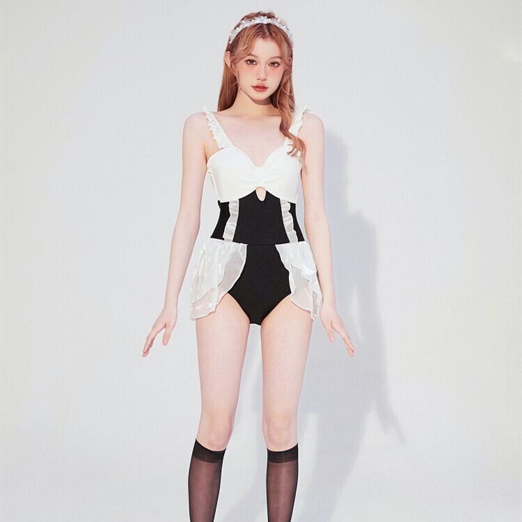 スウィート レース 透かし彫り リボン 着痩せ セクシー 水泳 温泉 モノキニ 体型カバー 水着64008797