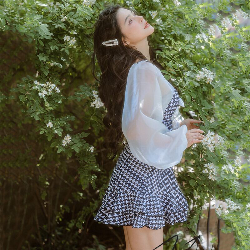 清新 体型カバー チェック柄 大きいサイズ 55-100kg 透かし彫り 温泉 XL-5XL ワンピース 水着64139336